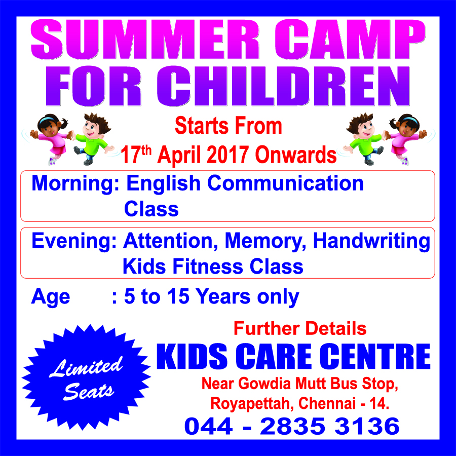 Summer Camp for Kids!!! Kids Care Rehab Center conducts Summer Camp for Kids at Royapetttah, Chennai.